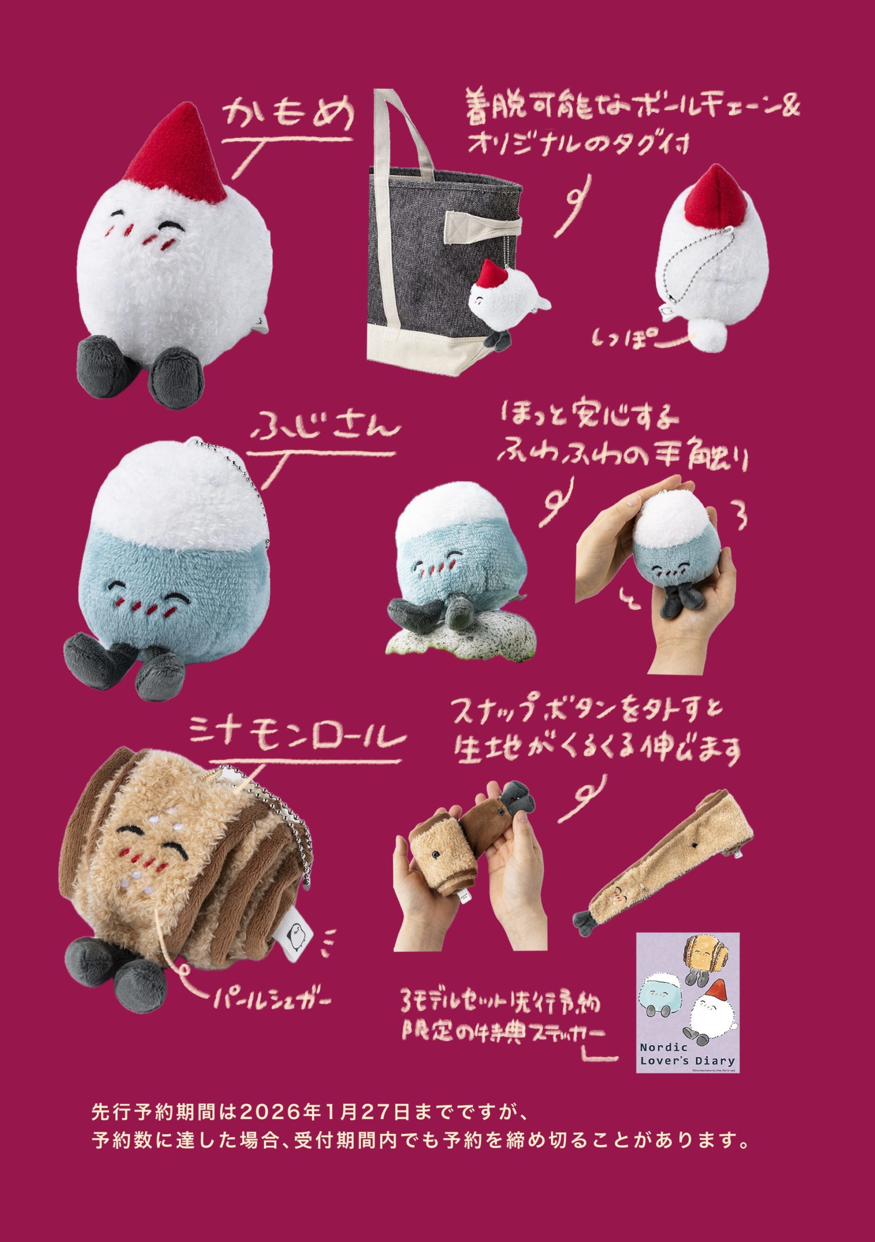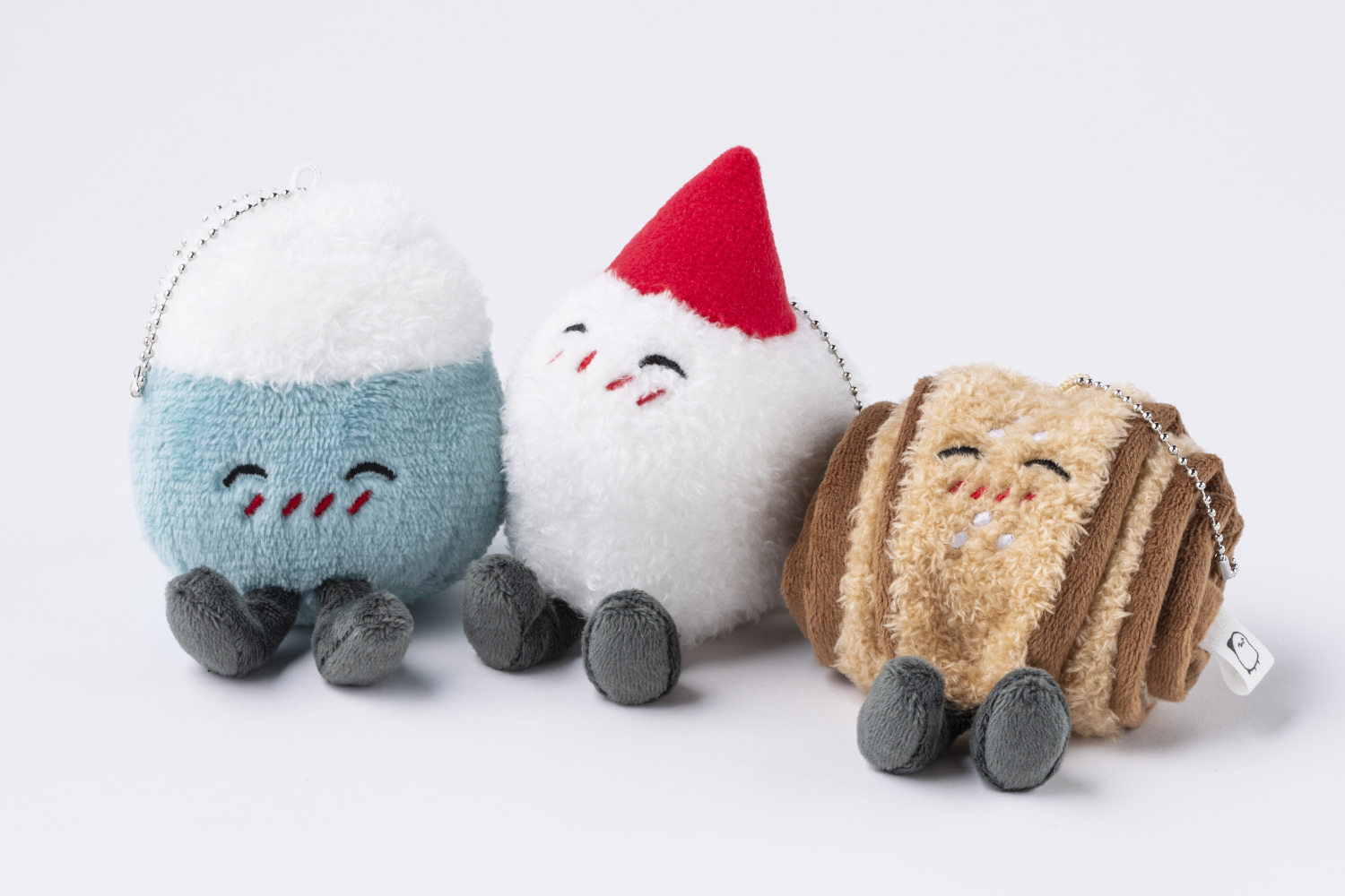 ふわふわで、手にのせると気持ちがゆるむような3種類のぬいぐるみです。